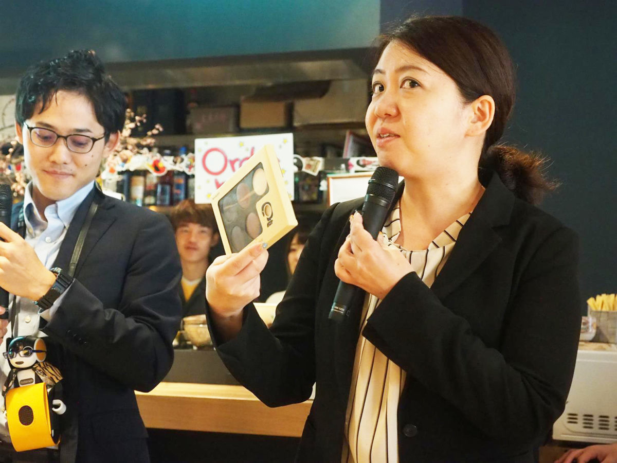 そして、今後のアップデートについてもアナウンスがありました。その内容は、ロボホン同士が会話する「ロボ会話」がパワーアップするというもの。ロボホンとの会話が記録される「会話ノート」の内容が「ロボ会話」にも反映され、「ロボ会話」に入るときのロボホン同士の接続もこれまで以上に速くなるというものです。先んじて今回デモンストレーションをやる予定でしたが、なんと不具合発生でデモンストレーションを開始できず。とりあえず、不具合の修復を試みている間に、次のコーナーである「ロボホン!勝手に早押しクイズ!」を行いました。