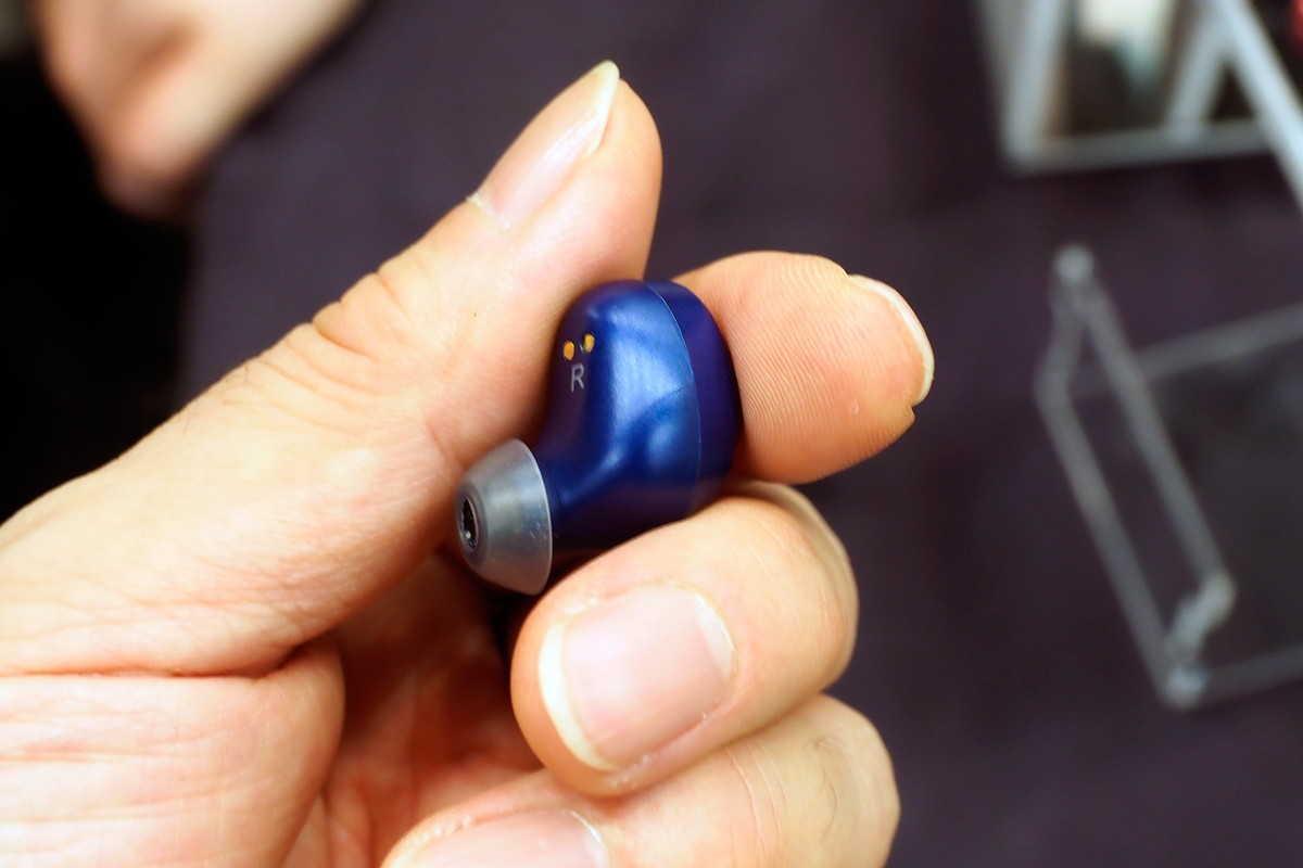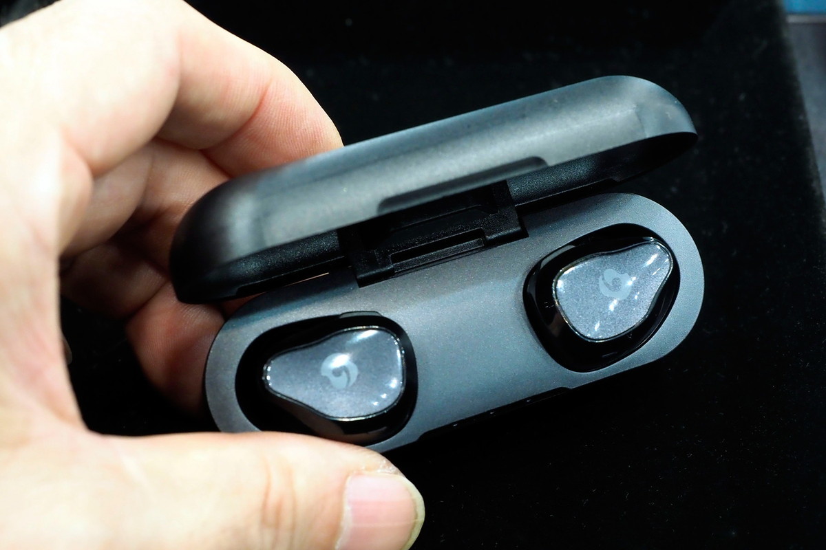 平面駆動型ヘッドホンで有名なHiFiMANから初登場する「TWS600」(1万3900円)は、LEDを効果的に使った近未来的なデザインで目立つこと間違いナシです。フィット感がよく遮音性の高いハウジングで、独自コーティングされた振動板を採用。高域にハリがある音で、低域はやや物足りない感じがしました。連続再生5.5時間、発売は7月末か8月初旬予定です。