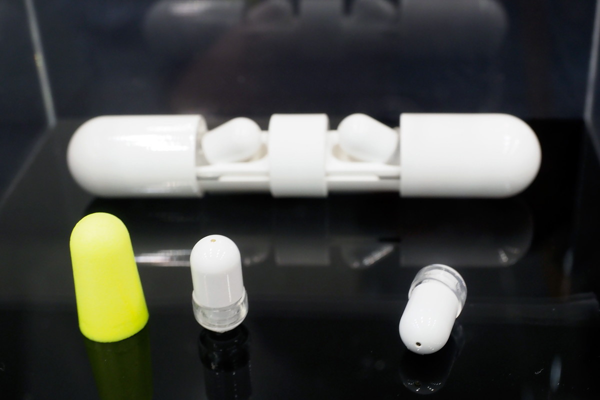 クラウドファンディングのGREEN-FUNDINGでも、完全ワイヤレスイヤホンのプロジェクトが進行中です。まず、4mm径のドライバーを搭載した世界最小の「GRAIN TW-A10W」です。耳栓よりも小さいハウジングで本体にボタンなどはなく、操作はスマホの専用アプリからおこなう方式です。BluetoothユニットはクアルコムQCC3026という最新チップを採用するため、連続再生時間も期待できそうですね。
