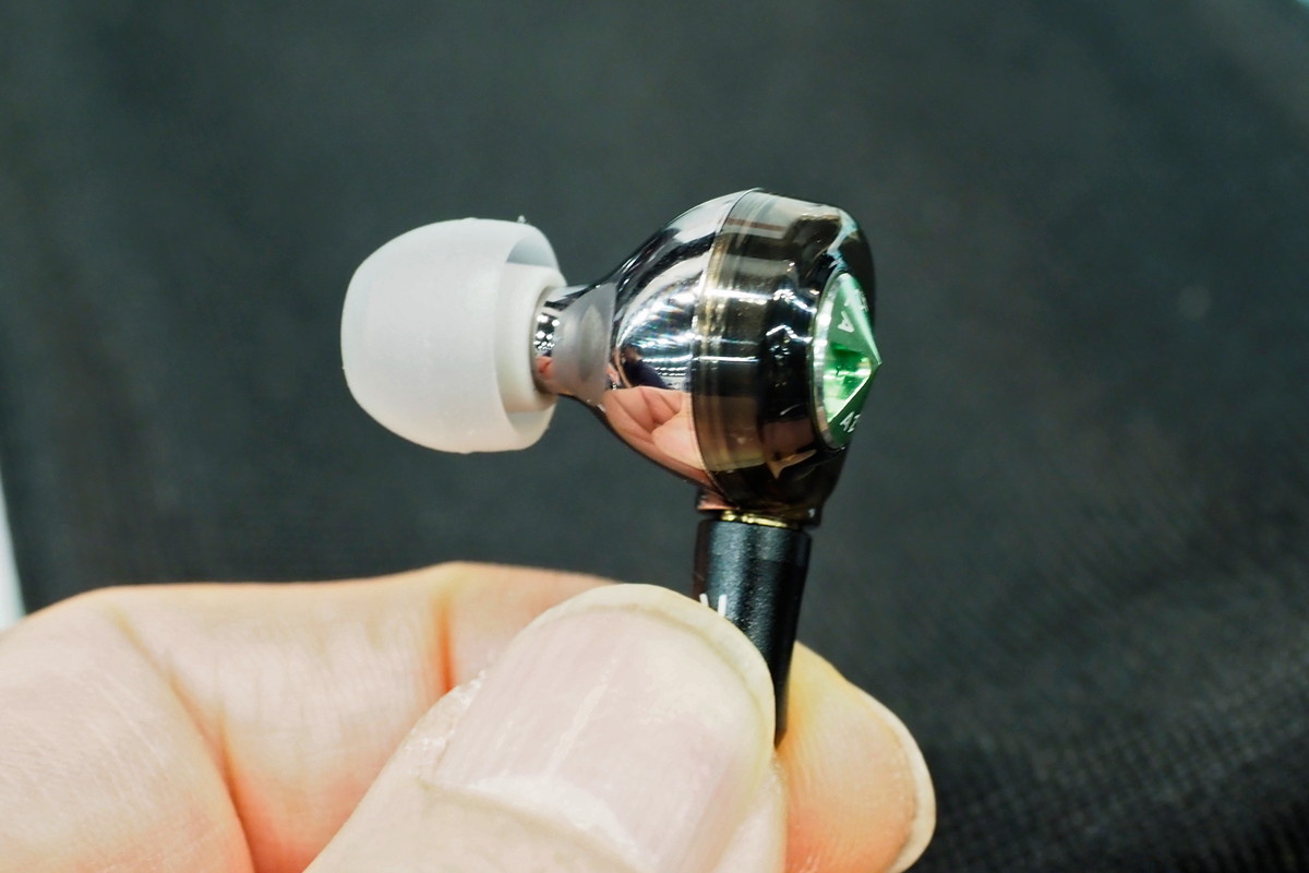 クラウドファンディングのGREEN FUNDINGのブースには、スティック型DACアンプ「Spectra X」が登場。USB-CまたはUSB-A端子に接続してD/A変換をおこないます。DACにはESS「SABRE 9018Q2C」を採用。「Spectra X2」はLightning端子を装備したiPhone用で、DACは上位機種の「SABRE 9118Q2C」を搭載しています。このタイプの製品はApple純正品も含めて何種類か聞いたことがありますが、そのなかでも群を抜いた高音質でした。iPhoneとは思えない、粒立ちが良く解像度の高いやや硬質な音で、Bluetoothより有線のほうが音がいいと再認識させてくれました。