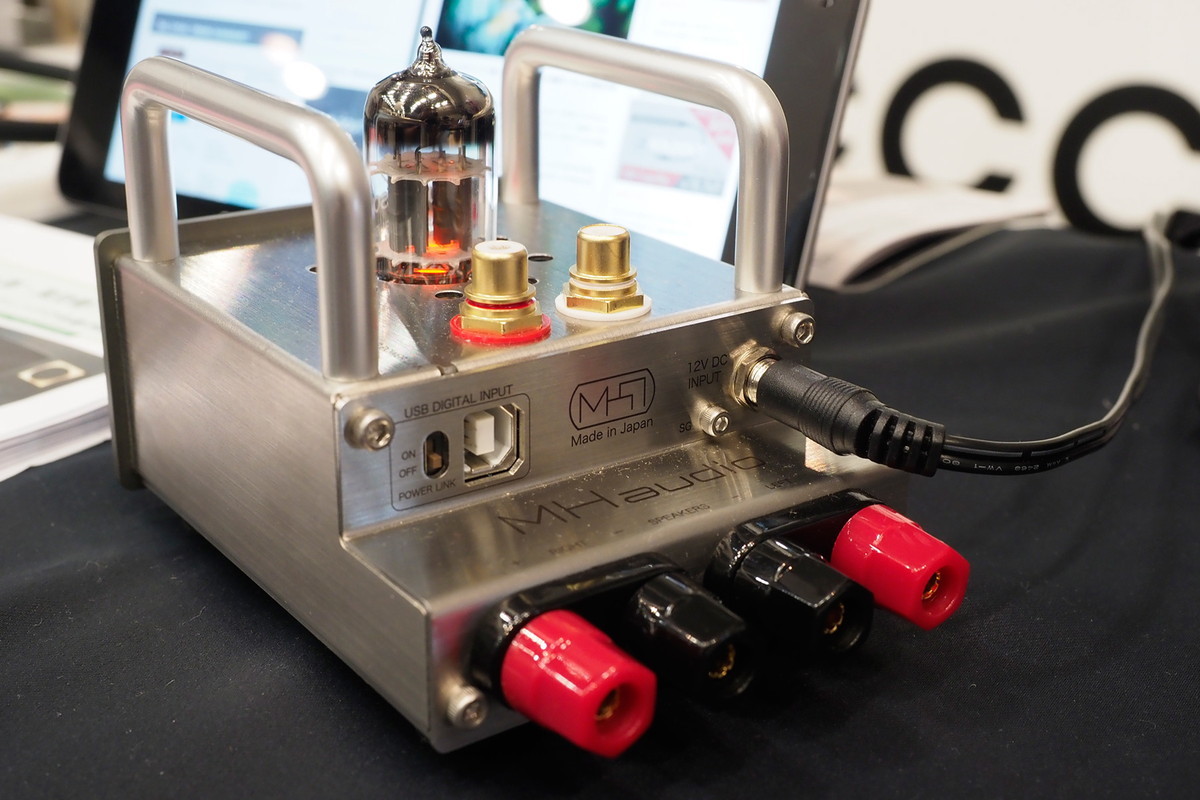 MHaudioが作ったのは真空管ハイブリッドアンプで、ヘッドホンアンプも搭載された「UA-1」です。このサイズで本格的真空管アンプを作るのは無理なので、プリアンプを真空管駆動にして、パワーアンプは半導体アンプを使ったハイブリッド方式を採用。真空管は1本しかありませんが、これは双三極管と呼ばれ1本でステレオ信号に対応するため内部に三極管が2本入った構造になっています。具体的には12AU7という真空管を使用。この真空管を別のブランドと交換するだけでも音色の違いが楽しめます。