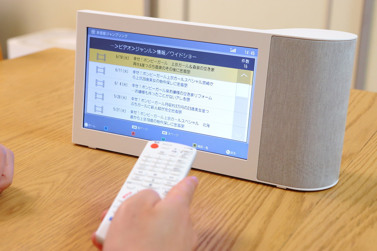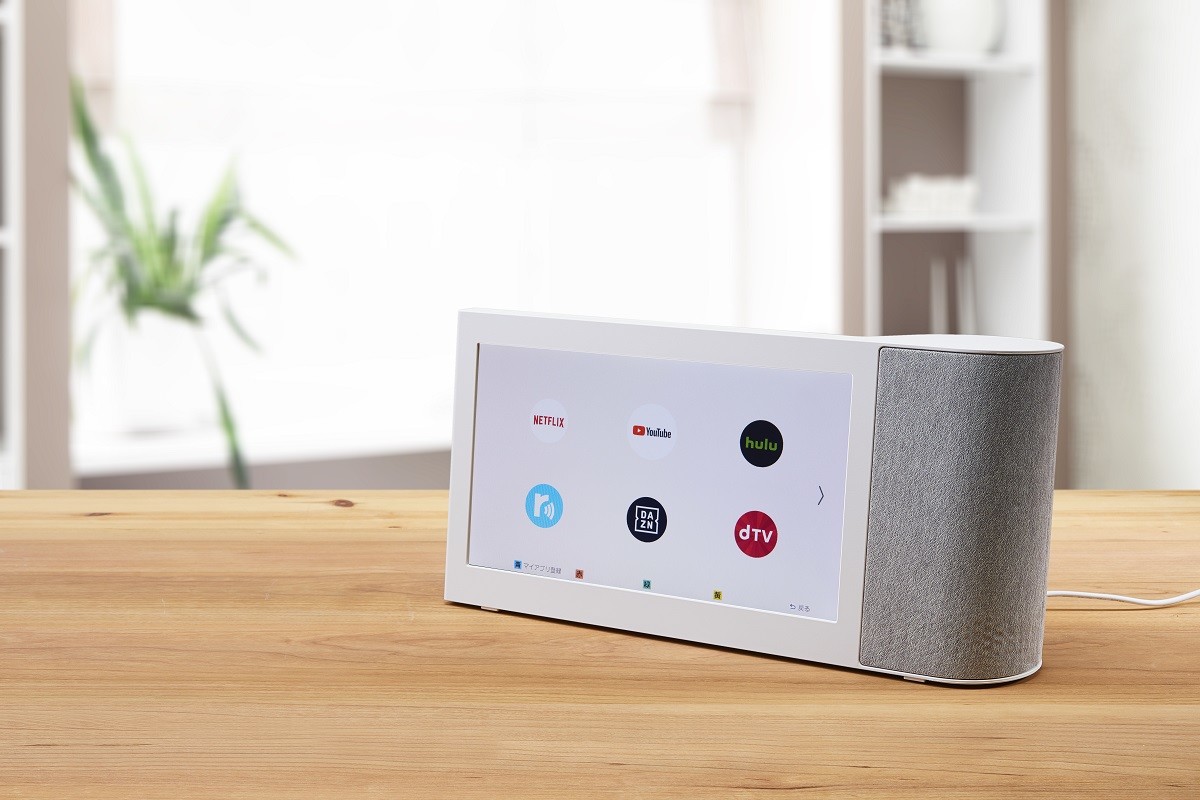 10V型モニターと360度に音が広がるワイヤレススピーカーが一体となった、新コンセプトのデバイス。YouTubeやNetflixなどの動画をスタンドアローンで再生できるほか、スマホからキャストして楽しむことも可能。モニター部のタッチ操作には非対応で、スマホや付属の専用リモコンを使って操作します。
