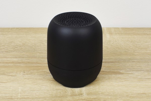 丸みを帯びたスピーカーの大きさは、約72(縦)×72(横)×81mm(高さ)。重さもおおよそ165gと軽く、カバンに入れても難なく持ち運べそう。本体側面には電源がついていて、音量調整やBluetoothの設定が可能です。