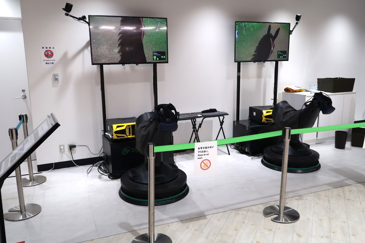 今回はスペースファイター・乗馬を体験しましたが、実際、馬に乗っているかのようなお尻に伝わる振動。耳から聴こえてくる馬の鼻息、隣を見れば対戦プレイヤーのアバターが見えるなど、普通のゲームとは違う臨場感と乗馬をしている感覚がありました。