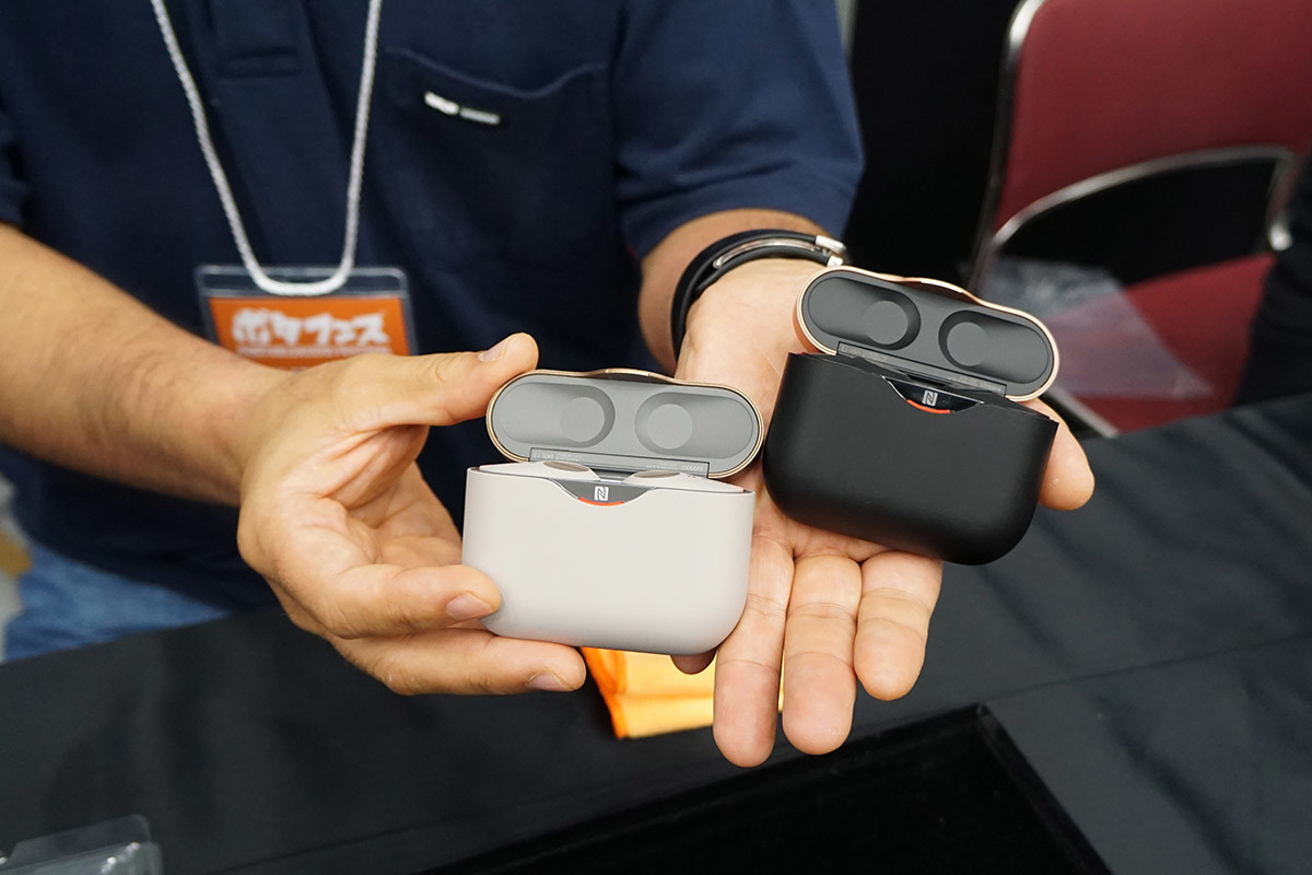 ソニーブースでは、一部の店舗で品薄になるなど、爆発的な人気となっているノイズキャンセリング機能搭載の完全ワイヤレスイヤホン「WF-1000XM3」に人だかりができていました。