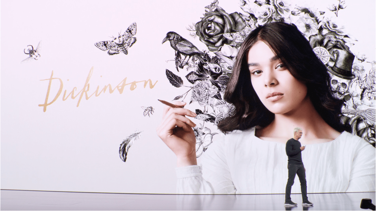 その発表は、まず最初に3つの番組の紹介から始まりました。それがこの夏に予告編が公開となった、「For All Mankind」「Dickinson」「The Morning Show」です。これらの予告編は1億回以上もの再生回数を達成し、反響も大きかったとティム・クックは語ります。