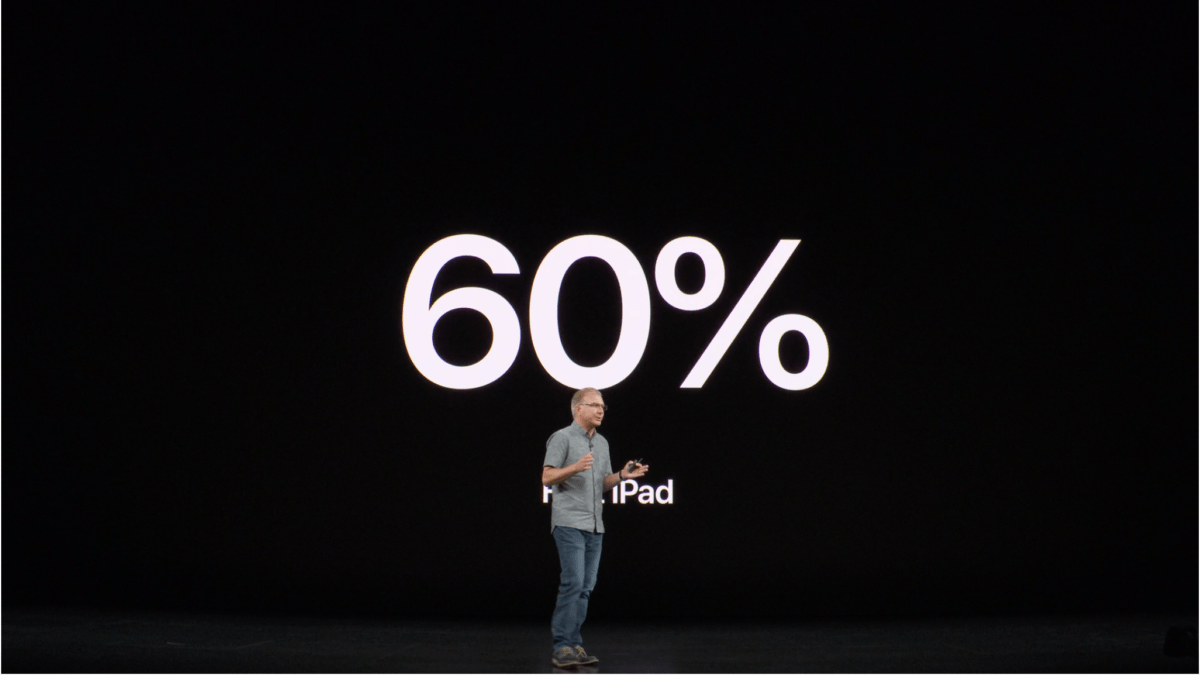 全ユーザーの60%が使っているという、9.7インチモデルの後継にあたります。10.2インチのLetinaディスプレイを搭載、330万ピクセル、「米国でもっとも売れているノートPC」の倍のパフォーマンスを誇るとのこと。