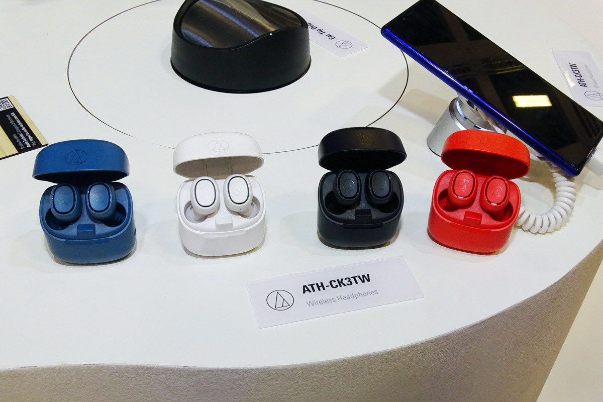 オーディオテクニカの「ATH-CK3TW」はイヤホンとケースのコンパクトサイズにこだわりつつ、ヨーロッパでは11月に99ユーロ(約1万2000円)で発売を予定するエントリークラスのTWSです。本体の左右側面にタッチコントローラを搭載。オーディオコーデックはaptXにも対応しています。自然な開放感のある中高域と、力強い低音が印象的でした。