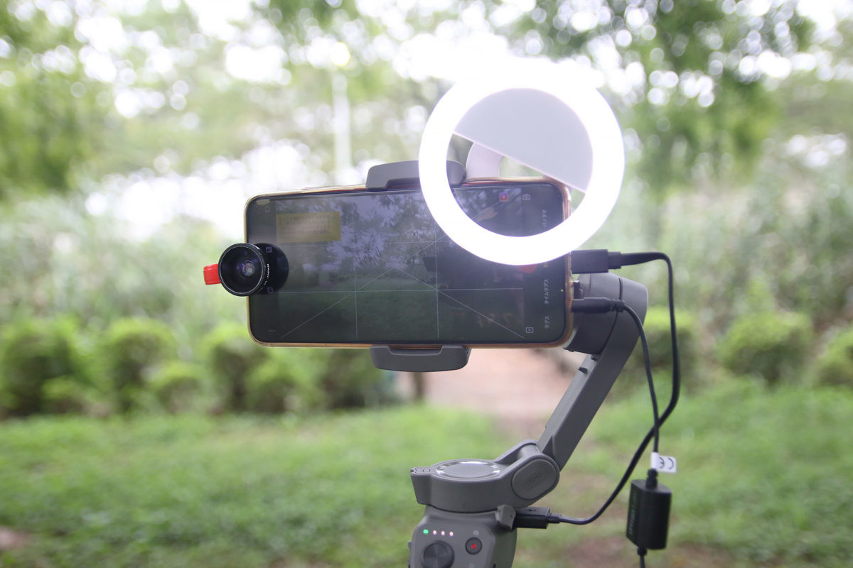 撮影にスマートフォンを使うメリットとしては、クリップ式のワイドレンズやLEDライトなどのアクセサリー類を使えることが挙げられる。とはいえあまり重くなってしまうとジンバルに負担がかかってしまうのと、左右の重量バランスに注意が必要だ(対応スマートフォン重量は170〜230g)。また従来のようにスマートフォン底面が塞がれていないので、USBケーブルで充電しながらの撮影や、外部マイクの接続も容易になった。