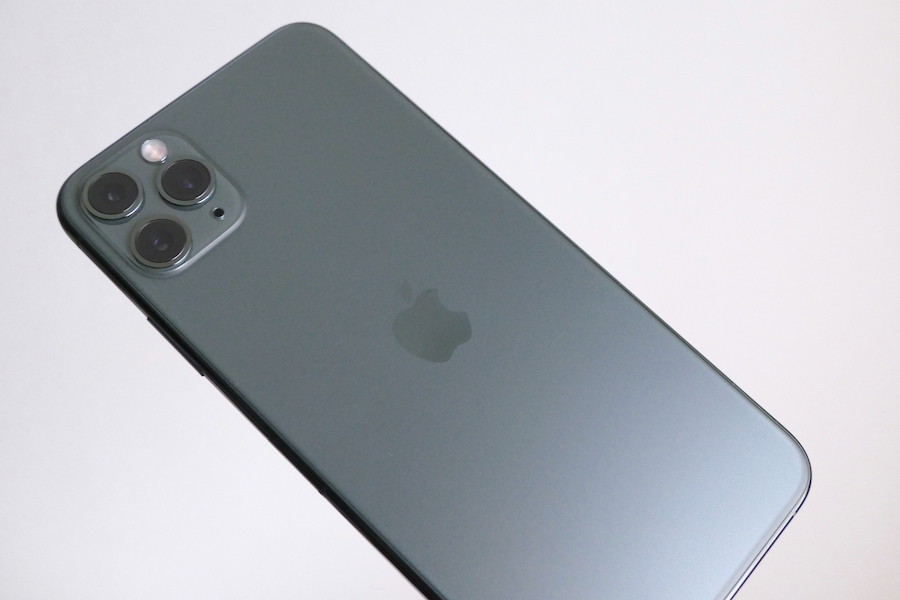 一方、iPhone 11 Proシリーズは、フレーム部に医療グレードのステンレススチールを使用。背面にはテクスチャードマットガラスを採用し、ロゴマークとカメラ周り以外はサラサラとした手触りになりました。指紋も付きづらく、高級感を醸し出しています。光沢感はありますが、反射による周囲の景色の映り込みはありません。歴代機のどれにもあてはまらない、全く新しい質感です。あえて言うならMacBookのサラサラ感が近いかもしれません。