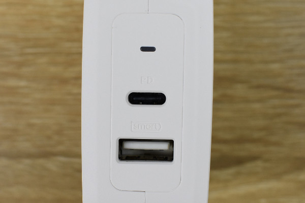 同商品は、USB Type-CポートとType-Aポートの2ポートを搭載。Type-Cポートが最大61Wの高出力で充電できるのが特徴です。また高出力にも関わらず、⼀般的な同出力の充電器より約15%ほど小さいよう。さらに電源入力は100Vから最大240Vまで対応しているので、世界中の国で使えます。どこでも素早く充電できるのはありがたいですね。