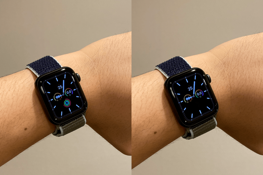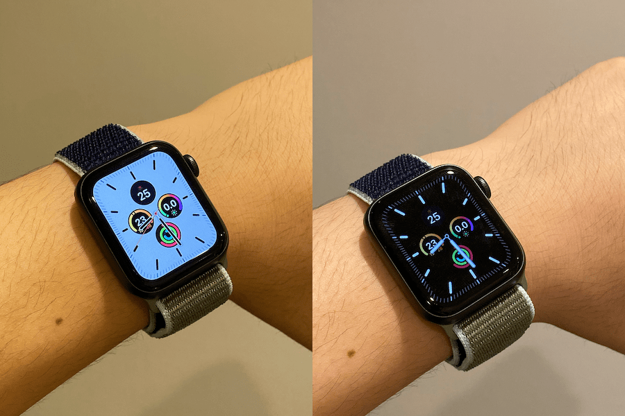 これまでSeries 4を使っている間は、別にこうした点灯が普通だったので特に気にならなかったのだが、一度常時表示を経験してしまうと、このギャップが少し気になるようになった。おそらく視覚として認識するまでのスピードはそれほど遅くはないのだが、点灯時の印象がかなり異なる。いきなり情報が表示されることへの戸惑いとでも言えばよいだろうか——。Series 5では常時表示から通常表示にふわっと切り替わるだけなので(もちろん、選択する文字盤にもよるが……)、パッと眩しく感じず、心地が良い。