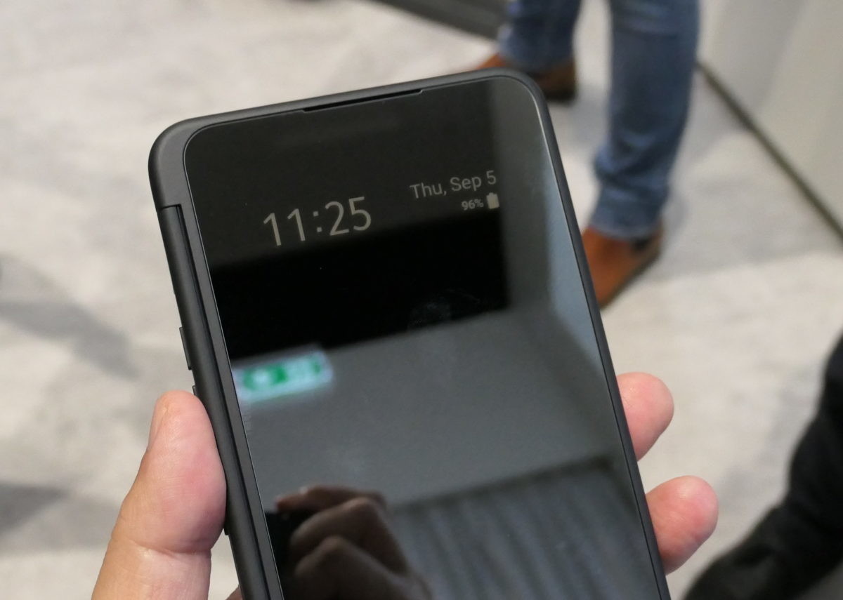 DualScreenの背面には2.1インチのモノクロの有機ELディスプレイも搭載されています。これによって、折りたたんだ状態でも現在時刻や各種通知がわかる仕組みです。