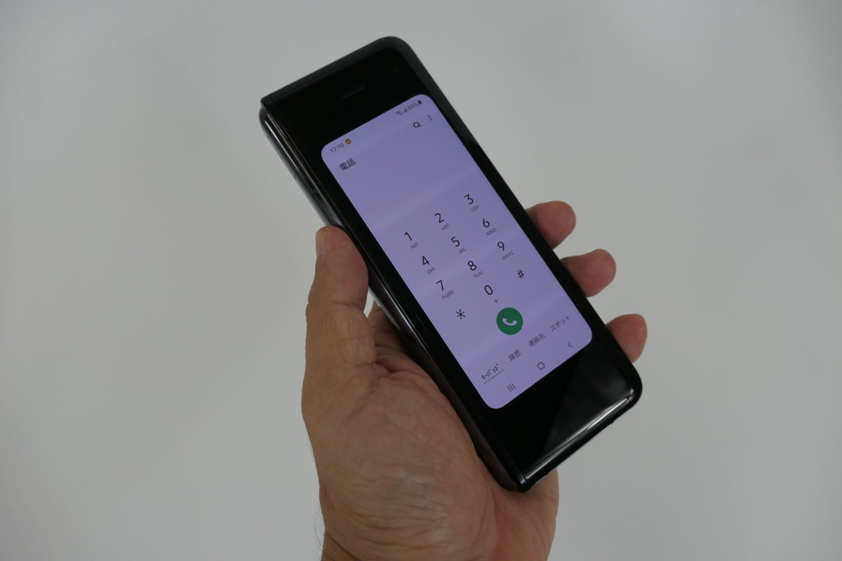 Galaxy Foldは開いた状態では7.3インチ(2153×1536ドット)のディスプレイを利用でき、折りたたんだ状態でも4.6インチ(1280×720ドット)のディスプレイが見られるという画期的なモデル。開いた状態での利便性は想像していた通りでしたが、折りたたんだ状態でも使いやすいことにビックリ。横幅が約62.9mmになるので、片手で持ちやすく、電話をかけたり、メールを入力したりするのも、フツーのスマホよりも使いやすく感じました。