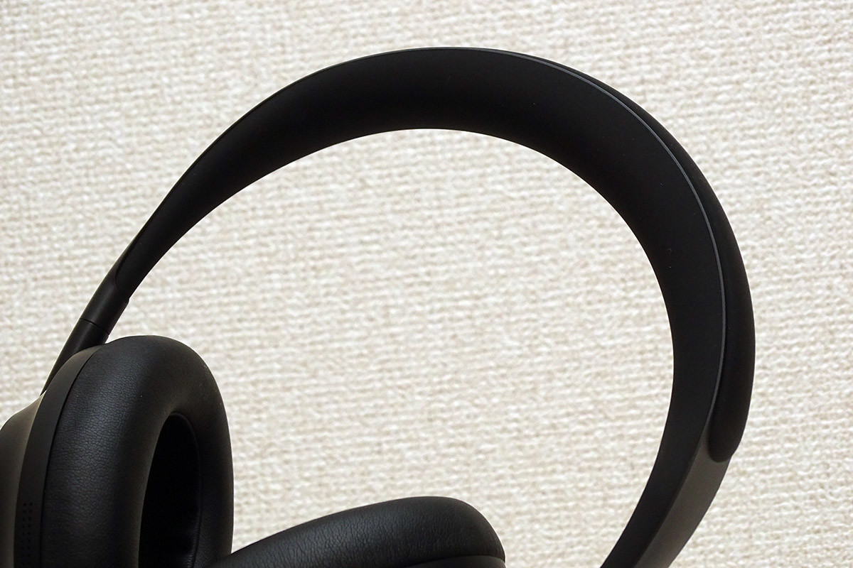 イヤーカップを外側から支えるアームをスライドさせてかけ心地を調整します。柔軟に曲がり、柔らかいクッションを内側に設けたヘッドバンドは頭部にピタリとフィットして、素直で心地よい装着感が得られます。本体の質量はQuietComfortに比べてNCH700の方がわずかに目方が増しているのですが、本体を手に持ってみてもそうは感じられないから不思議です。飛行機の旅などで長時間身に着けていても疲れる感じがしませんでした。