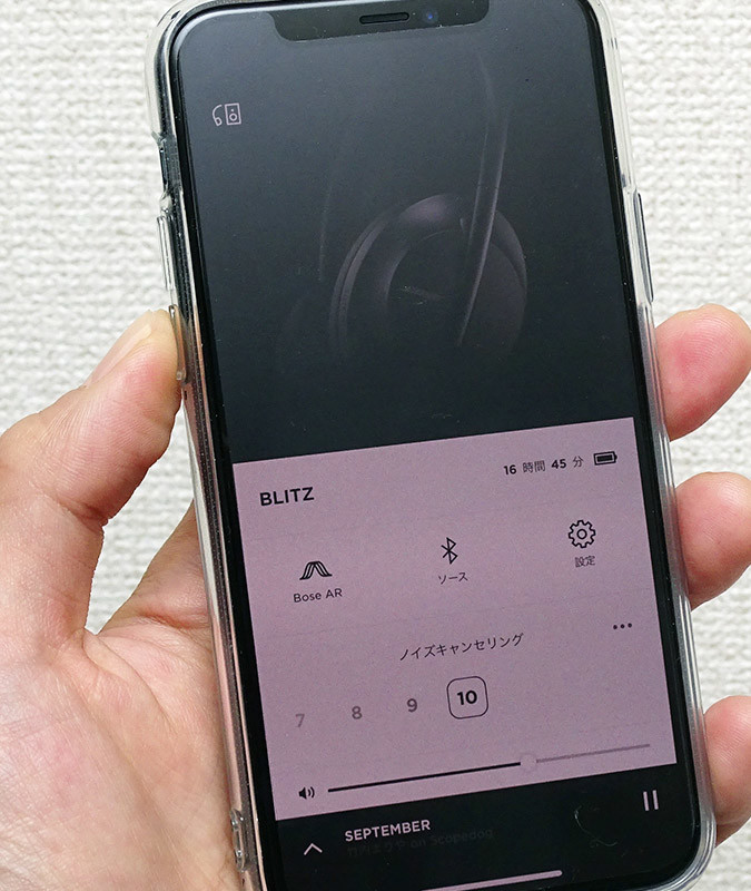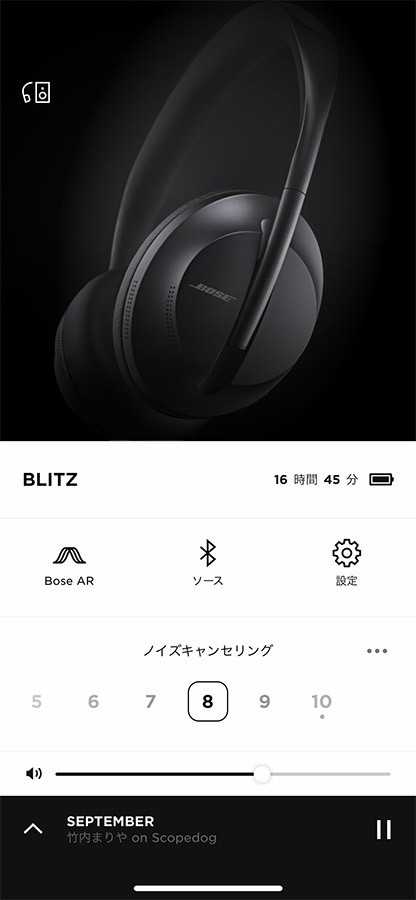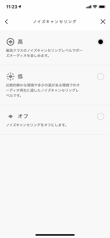 QuietComfortシリーズの最新モデルである「QC35II」もノイズキャンセリングのレベルを高・低・オフの3段階から選べる仕様になっていましたが、新しいヘッドホンのNCH700はモバイルアプリの「Bose Music」から消音効果を0〜10までの11段階で選べるようになっています。