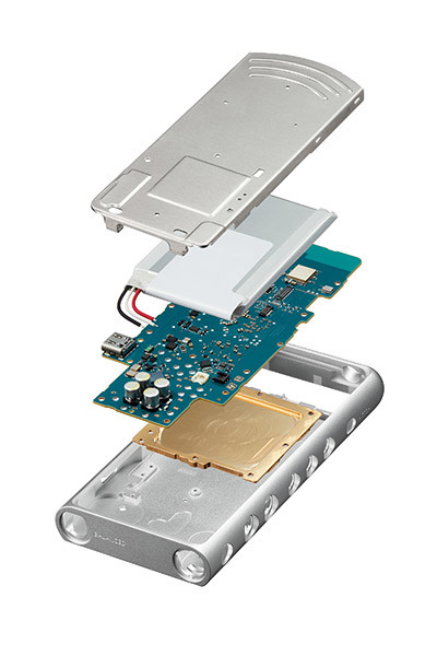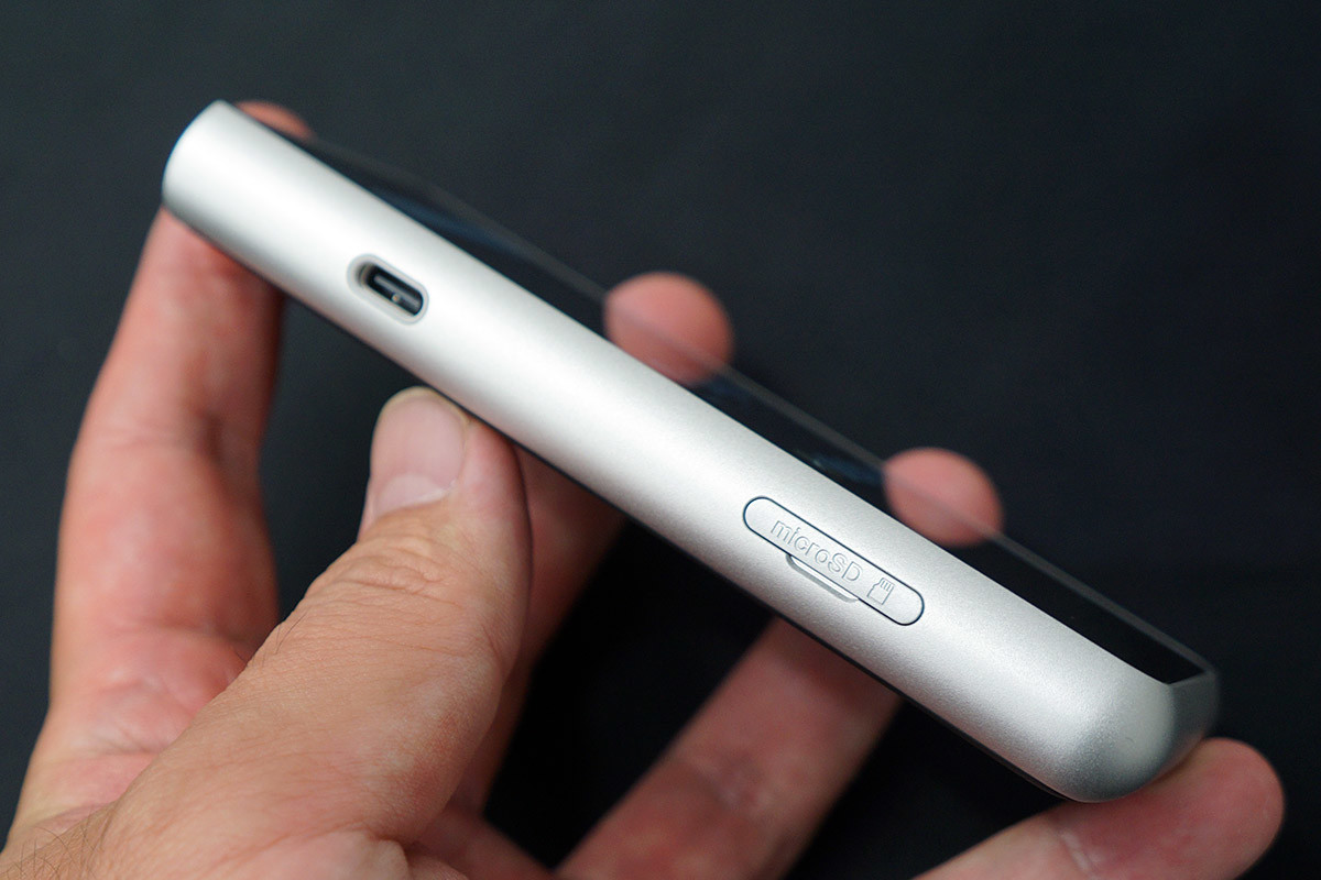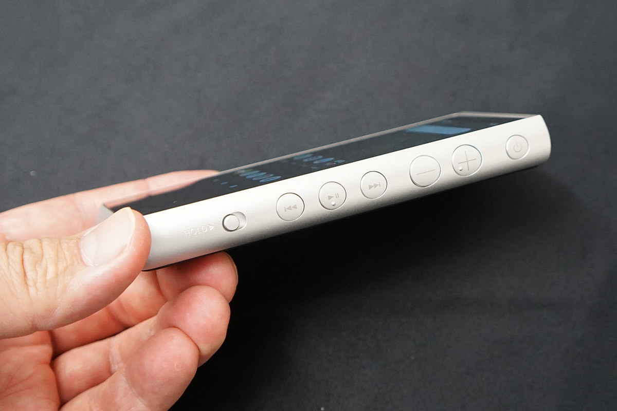 筐体は、従来同様に持ち運びやすいコンパクトデザインを踏襲。アルミ材を削り出したシャーシにより、エントリーモデルながら高い質感を備えています。本体側面には物理ボタンも搭載。バッグやポケットに入れたままでも、音楽の再生/停止、曲送り/曲戻し、音量調節などの基本操作がしやすくなっています。