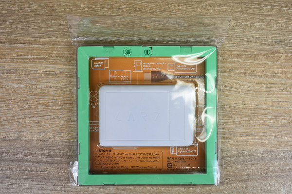 CDケースのようなパッケージに入った同商品は、白を基調としたシンプルなカラーリング。約86(横)×55(縦)×8.6mm(厚み)ほどの大きさ。重さが約52gと軽く作られているため、カバンに入れてラクラク持ち運べます。
