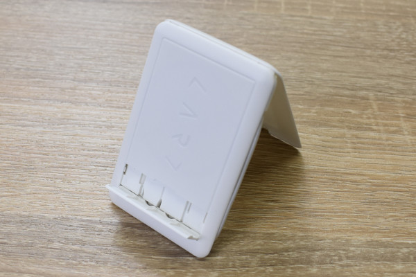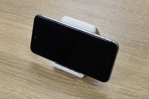 さらに60度開いた状態で止まる“フタ”を組み合わせれば、スマホ用の簡易スタンドに変身。スタンドにした状態でUSB接続すると、ワイヤレス充電することが可能です。スタンド兼充電器になるので、動画を視聴する際に役立ちそう。