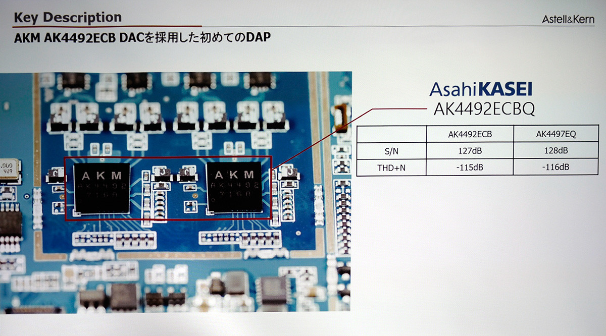 特に今回、注目なのはDAPに初搭載された「AKM AK4492ECB」DACチップをデュアルで搭載したことです。4492はハイエンドオーディオ用のAK4497の高音質技術を受け継ぎ、低消費電力を実現したチップで、連続再生時間を延ばしてくれます。ちなみに本機の連続再生時間は約8.5時間です。