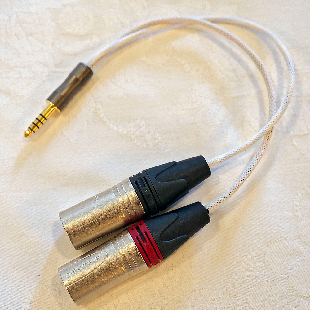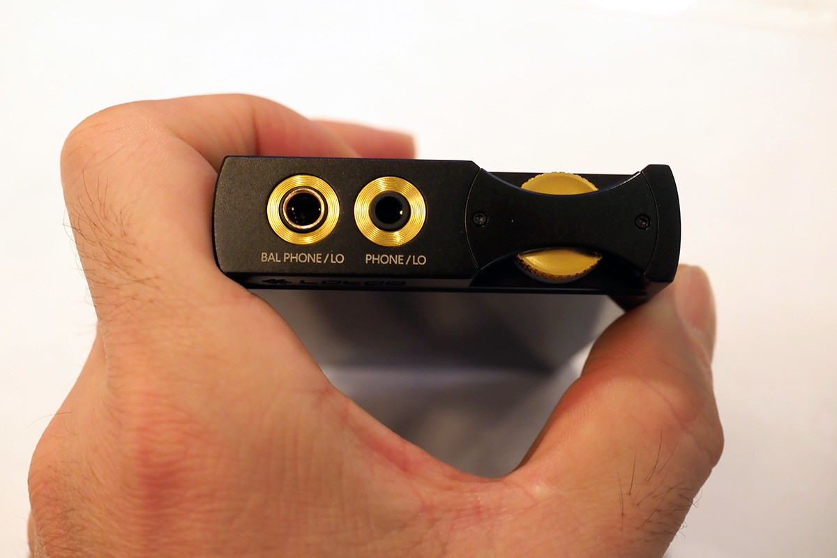 アナログ回路にはゲイン切り替えがあり、イヤホンやヘッドホンの種類によって最適の音量が得られます。また、DSPを使った独自の低域の増強回路TrueBassは中高域に干渉することなく深く沈み込む低音を実現します。そしてバランス出力対応。これも画期的です。出力端子は4.4mmですが、純正アクセサリーでXLR変換ケーブルが発売される予定です。