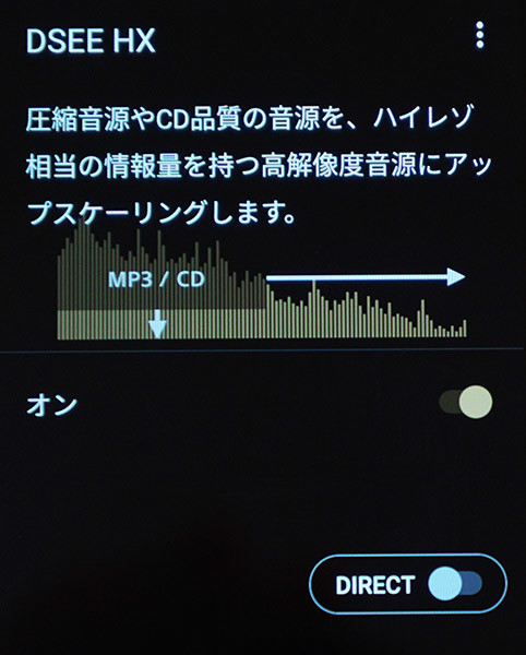 ひとつ留意しておかなければいけないのは、ウリであるDSEE HXやDCフェーズリニアライザー、バイナルプロセッサーなどの高音質化設定が、ワイヤレス接続時は無効になってしまうこと。イコライザーもNGです。