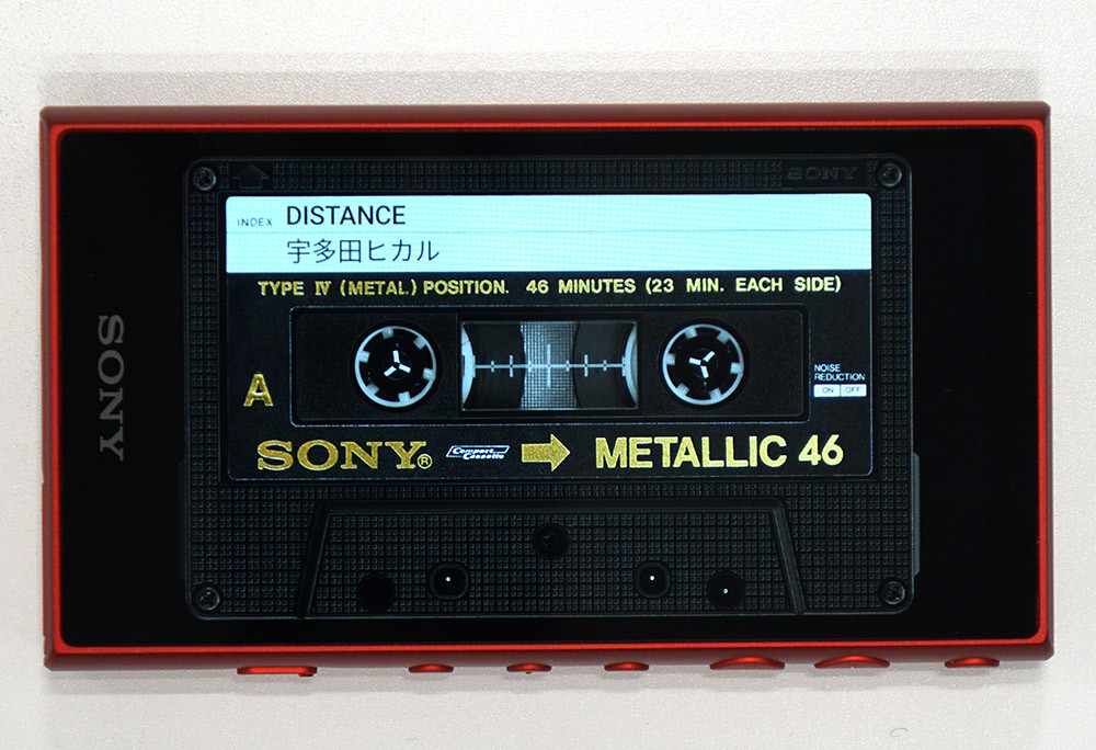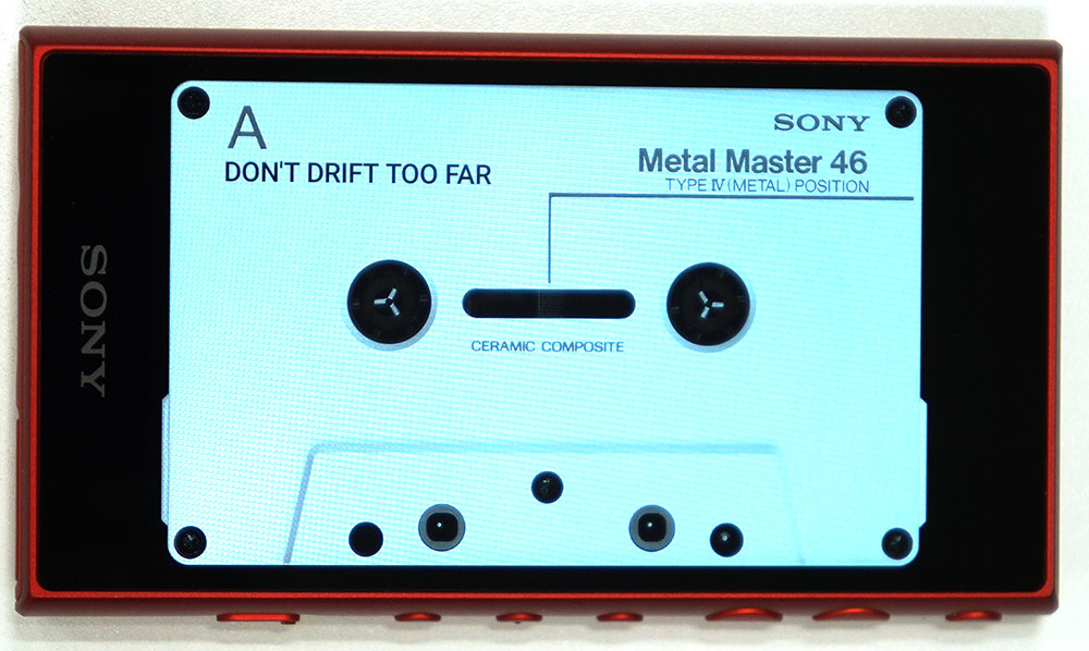 もうひとつ押さえておきたい機能が、A100シリーズとZX500シリーズだけに搭載されたスクリーンセーバー機能。再生時にしばらく放置しておくと、なんと懐かしのカセットテープを再生している映像が再生されます。しかも、再生する音源に応じてカセットのデザインがノーマル→ハイポジ→メタル→メタルマスターと実際に販売されたテープデザインに変わるほか、インデックス部分にアーティスト名と曲名も表示されるという、遊び心を感じる仕様がうれしいですね。