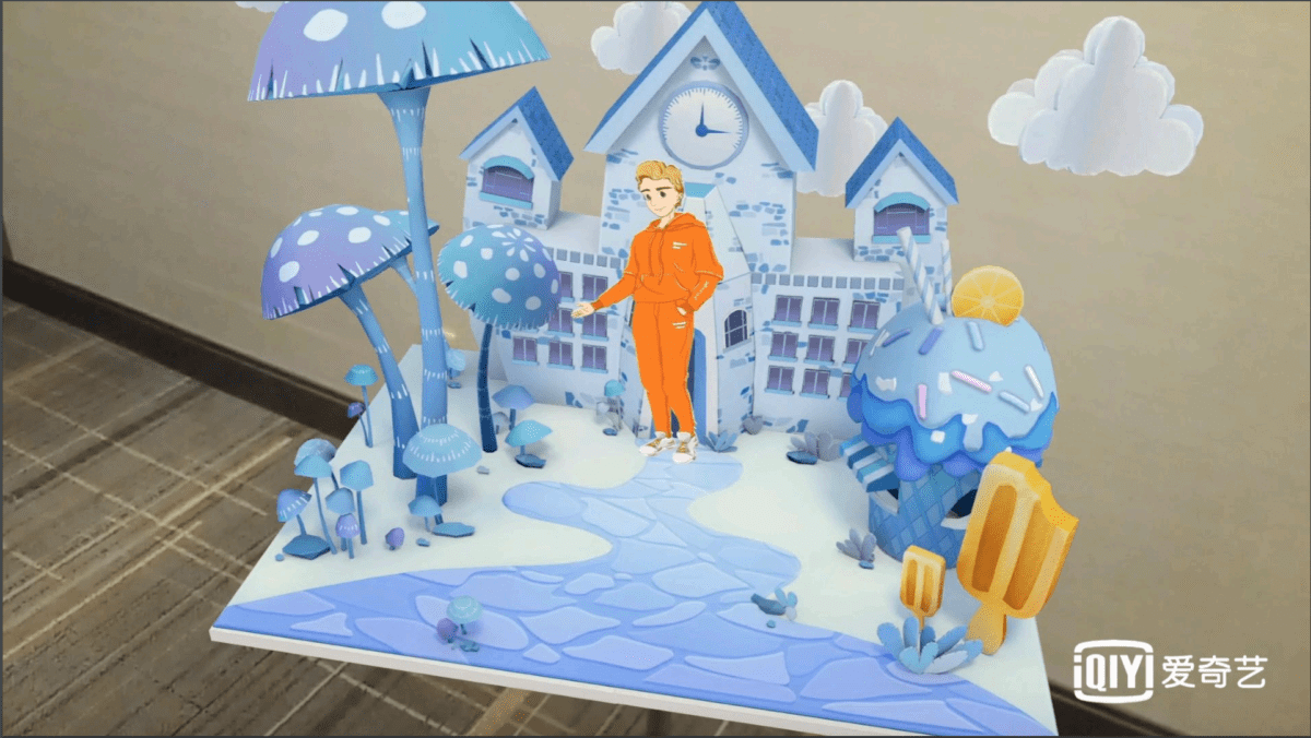 今回ふたつのアプリを体験してみました。ひとつ目は、目の前に立体的なグラフィックが浮かび上がってきました。360度見回すことができ、横、後ろからも姿を見ることができました。そして、中央の人が動き出しポップに踊り始めるなんて驚き!