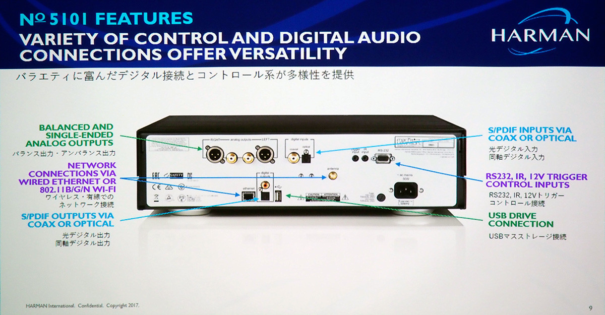 その第1弾がインテグレーテッドアンプ「No5805」です。普通に言うとプリメインアンプです。それだけではありません、MQA対応のUSB/DAC、MM/MCフォノイコライザー、Bluetooth機能搭載と多機能で、ヘッドホン出力とリモコンまで付いて、メイドインUSAの85万円です。