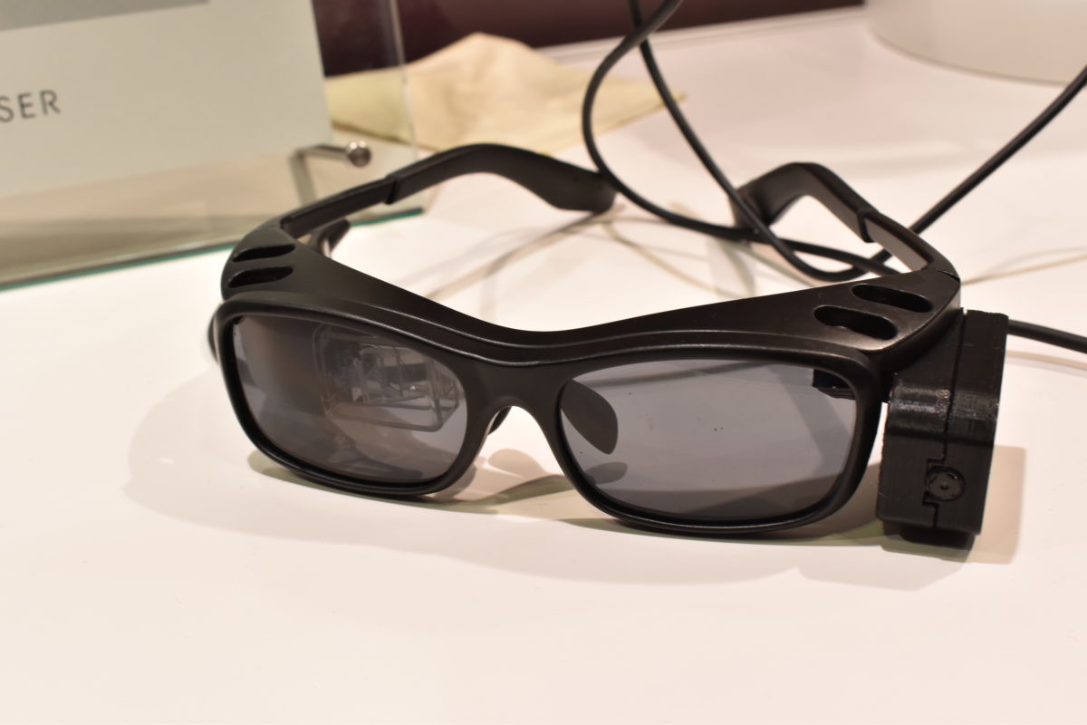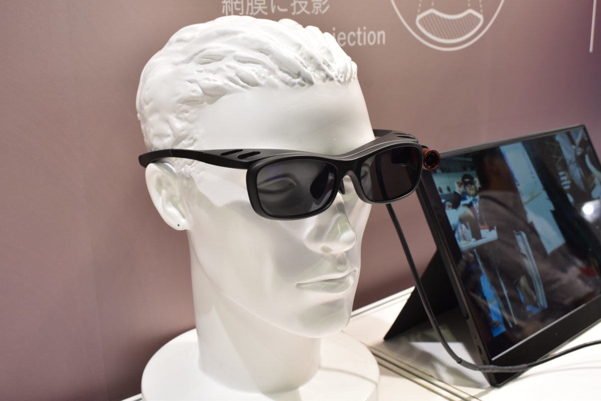 なかでも紹介したいのが、QDレーザが展示していた「RETISSA® Display Ⅱ」。というのも、レンズに映像を映すのではなく、網膜に直接映像を投射するスマートグラスなんです。