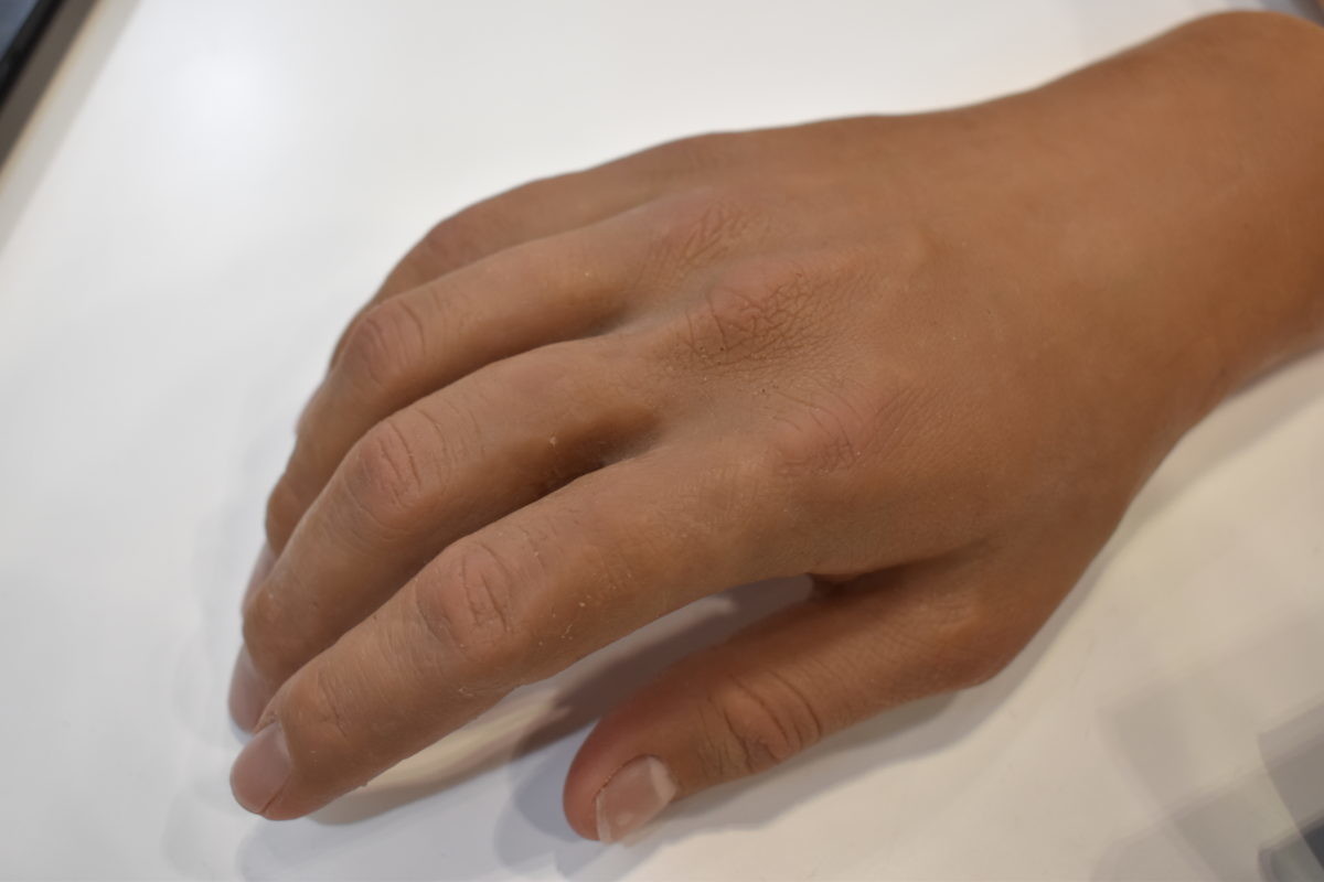 また、義手には3Dプリンターで作ったシリコンカバーを被せられます。CEOは、装着する人の肌と同じ色のカバーを制作すれば、見た目からは義手を着けていることがわからなくなると説明していました。片方の手をコピーすれば、同じ手相やシワのあるカバーを制作することもできるそう。