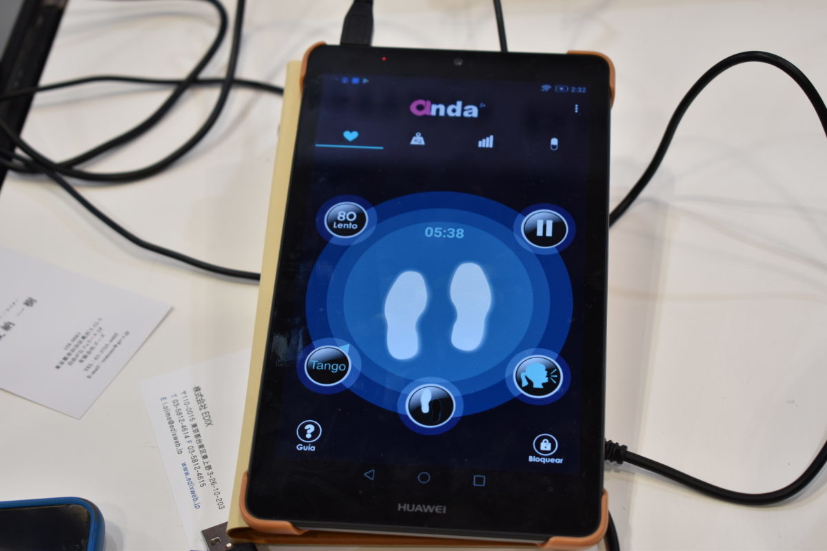 最後にスタートアップブースからもう1つだけ。興味深かったのが、コロンビアの企業Human Bionicsの「ANDA」というアプリ。パーキンソン病やアルツハイマー病により歩行がスムーズにできない人のために開発された、歩行を助けるアプリです。