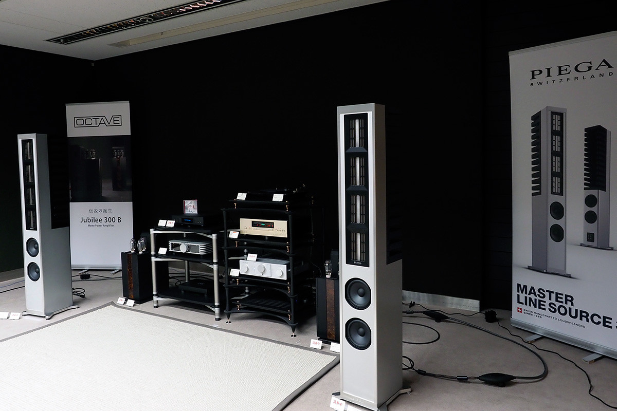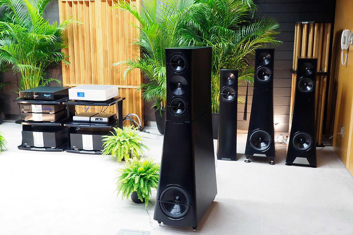 ツイーターの周りをミッドレンジが囲んだ同軸構造のリボンシステムを開発して、厚さ0.02mmのアルミ振動膜を使いネオジウム磁石によって100dBを超える高能率を実現しています。再生できる周波数帯域が広く、ウーハーとのマッチングに優れています。ウーハーはアルミコーンにセラミックコーティングされたものを使っています。「Master Line Source 3」は50kHzまで再生できるラインソースドライバーを搭載して、高さ165cm、重さ65kgで500万円です。