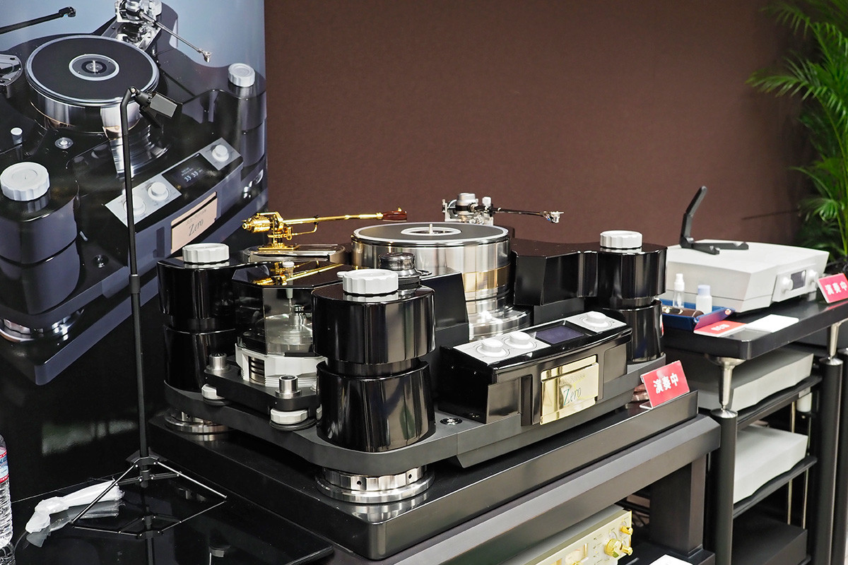 「Air Force Zero」は2015年から開発に着手しており、本年、遂に製品化に成功しました。総重量は350kg、プラッターだけで120kgあり、これを空気で浮かせて、レコード盤は空気の力でプラッターに吸着させています。超精密回転する特殊なモーターを3個使っており、これを確保できる数から計算して、本機は限定50台を予定しています。第1ロット10台はすでに予約完売とのことです。