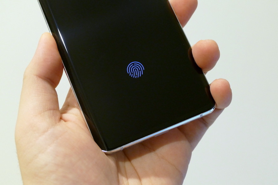 ディスプレイの中央下部には指紋センサーが内蔵されています。指紋を登録しておけば、スリープした状態でも、指紋認証によって素早くロックを解除可能。認証速度は十分に速いので、数日使用してみた上でストレスはほぼありませんでした。端末を持ち上げると白い指紋のアイコンが表示されるので、場所がわからなくなるという心配もご無用。