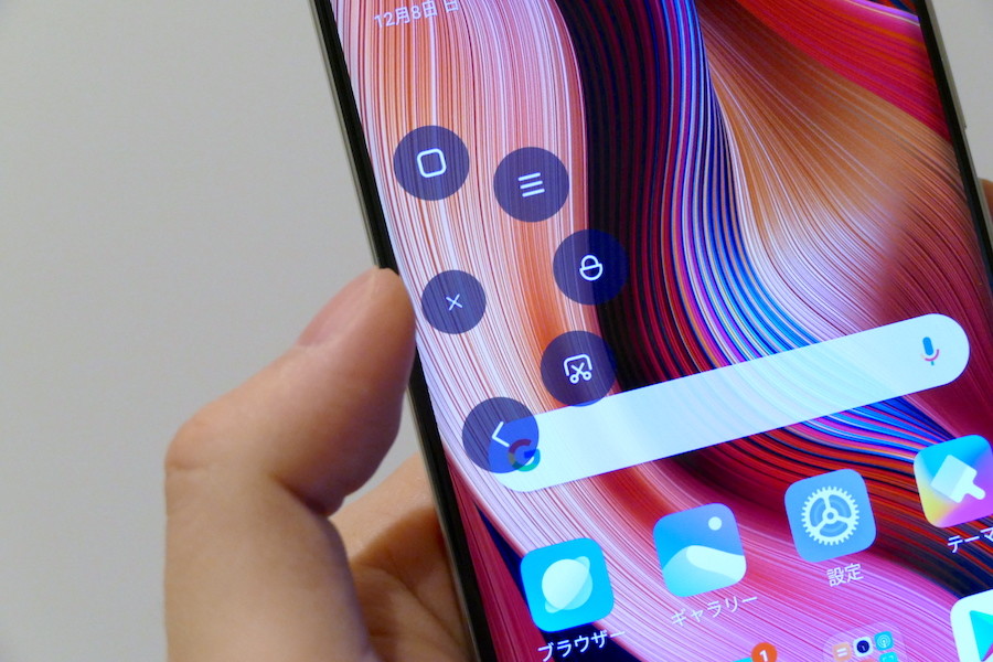 また、エッジ部からショートカット機能を割り当てたボタンを表示できる「クイックボール」機能も備わっています。通常ナビゲーションバーで行うような操作が、画面端で行えるため、片手操作時に持ち替えをせずに済みます。