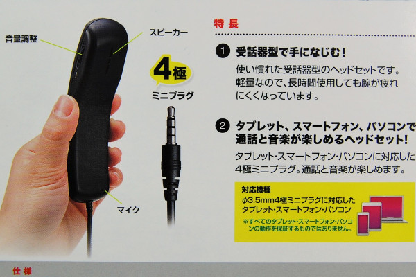 受話器と同じ感覚で使える「4極対応ハンドセット」(サンワサプライ)