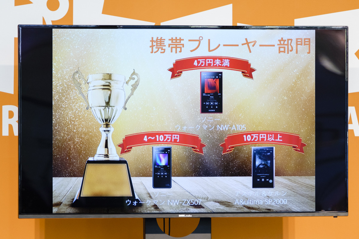 携帯プレーヤーは3部門中2部門がソニーという結果に。「選ばれたソニーの2モデルはいずれもAndroidOSを採用して、音楽のストリーミング配信に対応しています。一般的にこのようなプラットフォームの変更は音質劣化を招くのですが、どちらも音質が向上しています。悔しいですが、さすがソニーと言わざるを得ません」と野村さんもソニーの技術力に舌を巻いていました。1位のSP2000に関しては、「非常に高価ですが、このモデルにしか再現できない世界があるので、皆さんも1度聞いてみて欲しい」とコメント。