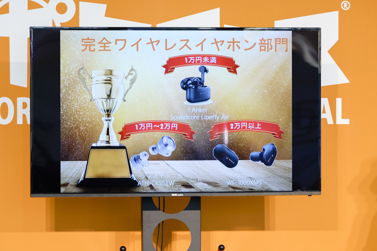 ワイヤレス部門で強かったのがソニーでした。1〜2万円と2万円以上でネックバンドと呼ばれるデザインの2モデルが受賞。いずれもノイズキャンセリング機能を搭載しています。1万円未満の部に選ばれたタオトロニクスは聞き慣れないメーカーですが「昔からあった音質よりも低価格をウリにしたハイコスパな製品を作る中国のメーカーでしたが、ここ1〜2年で急激に音質を向上させてきましたね。現在は高音質、低価格で勝負しています」と野村さん。2020年はタオトロニクスがさらにソニーを脅かすのか、ソニーの逆襲はあるのか、この動きに他のメーカーも追従してくるかどうか、来年も目が離せません。