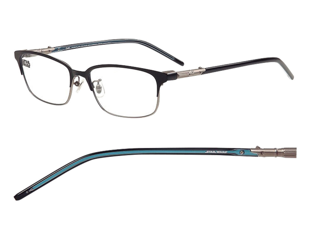テンプル部分でライトセーバーを再現したメガネ。芯金がセーバーの色になっています。ルークの青とダース・ベイダーの赤という2種類をラインナップします。