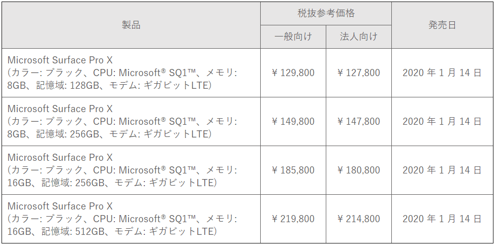 一般向けSurface Pro Xは全国量販店グループやMicrosoft Store(オンラインストア)で販売されます。