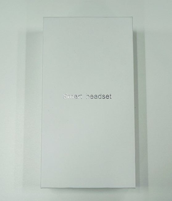 さっそく届いた商品をチェックしてみると、パッケージがとにかくシンプル。「Smart headset」という文字以外は一切の情報がありません。