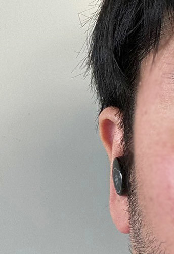 肝心のイヤホンは、意外といっては失礼ですが、ちゃんとした形状で装着感も悪くありません。耳への収まりもよく、悪目立ちしません。