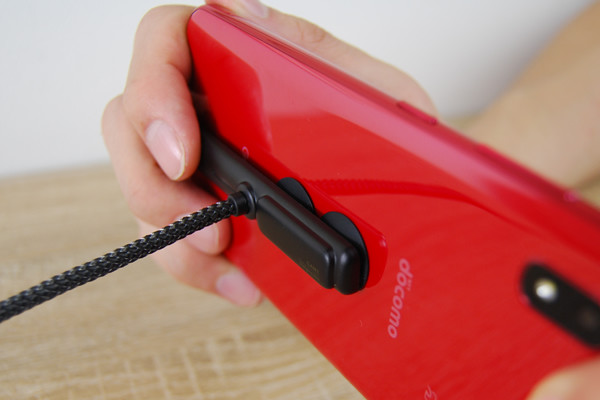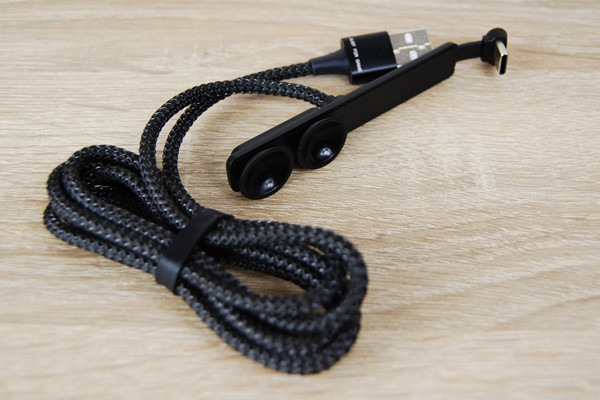 ケーブルにはブラックカラーの“ダブル吸盤”を搭載。どうやら2つの吸盤をスマホの裏にくっつけることで、コネクタが途中で抜けにくくなるようです。ケーブルは高耐久の“メッシュケーブル”を採用。引っ張りや引っかき傷に強いのはありがたいですね。