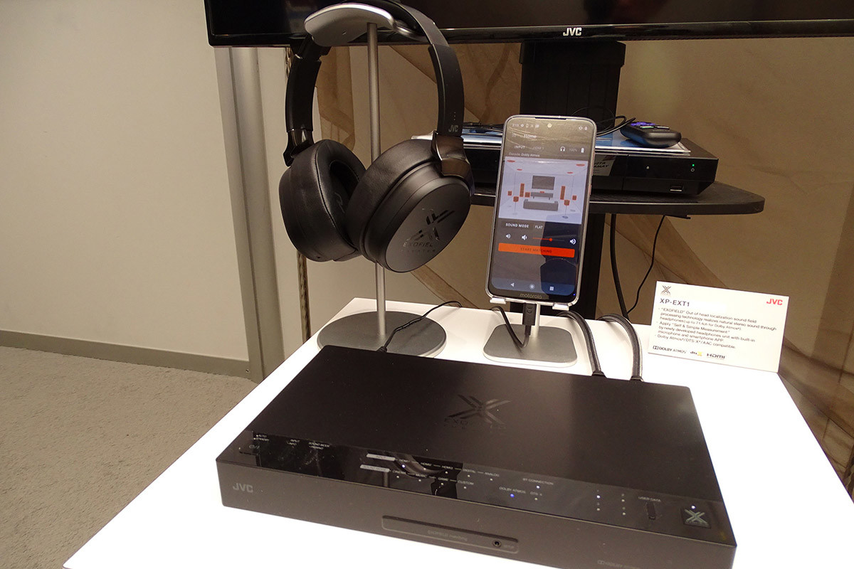 JVCはヘッドホン再生でスピーカーの音場と定位感を再現する、独自の頭外定位音場処理技術の「EXOFILED(エクソフィールド)」の7.1.4chマルチサラウンド版新製品「XP-EXT1」をCESで発表しました。去年はプロトタイプとして見せていたテクノロジーが商品化にたどり着いた格好です。欧米では春頃に1000ドル(約11万円)で販売を予定。日本でも時期は未定ですが発売を予定している製品です。