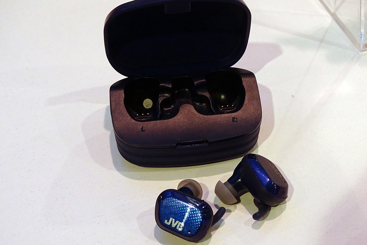 JVCはほかにも完全ワイヤレスイヤホンの新製品「HA-AE5T」を展示。IP55相当の防塵・防滴性能を備えるスポーツタイプのイヤホンです。価格は150ドル(約1.6万円)を想定しています。