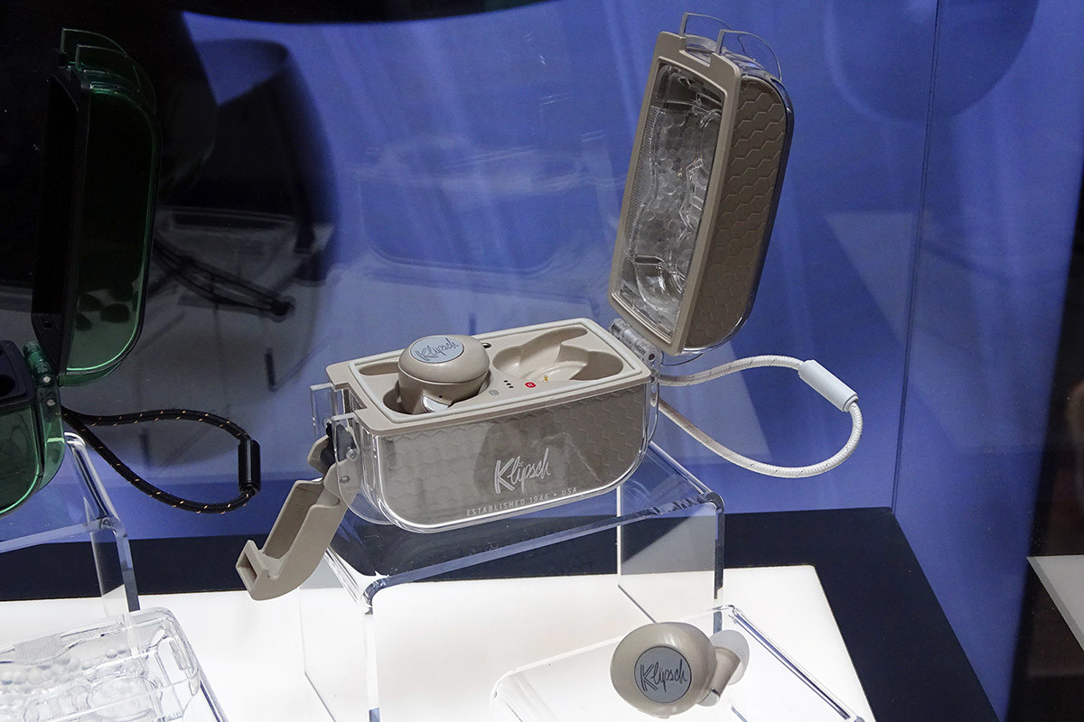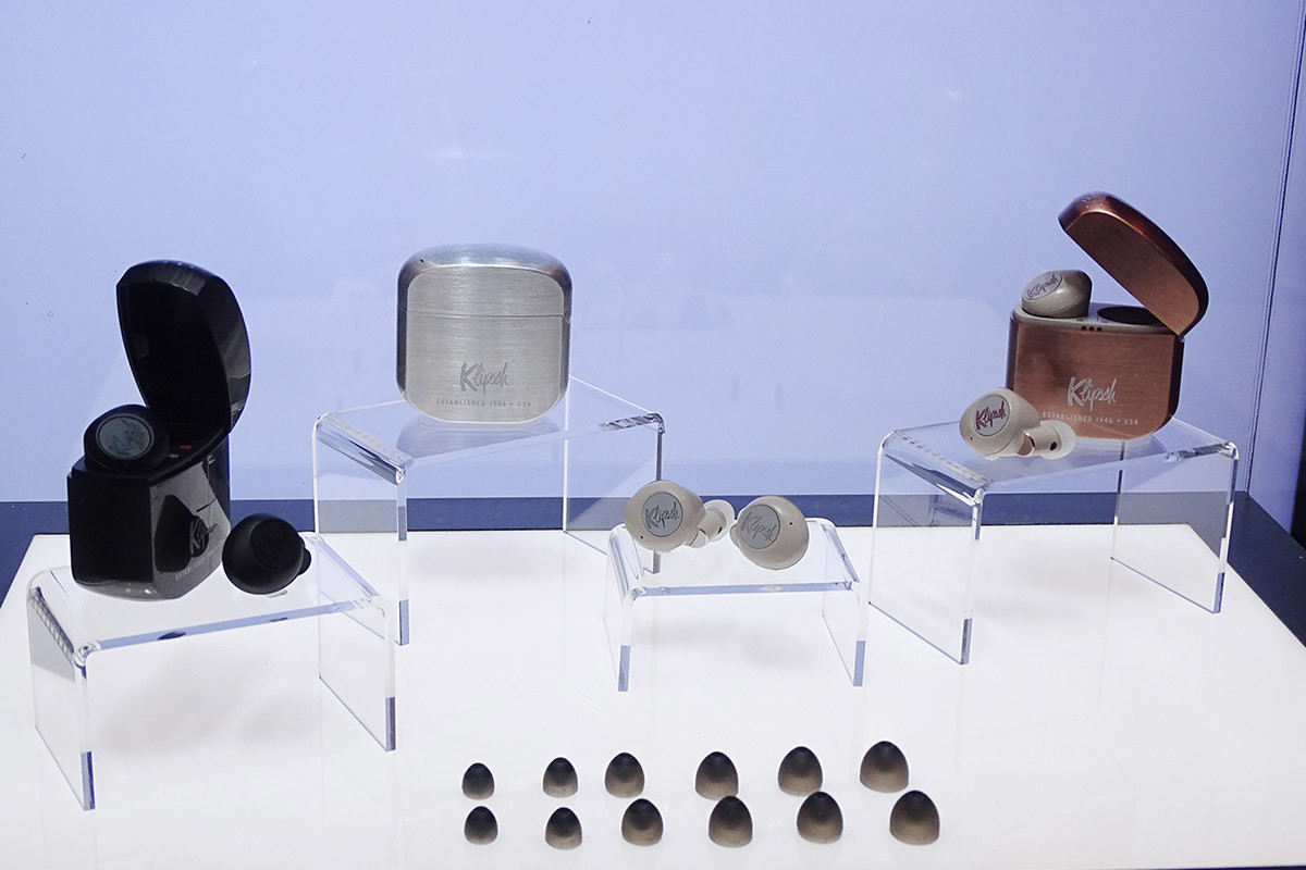 最上位の「T10」はクリプシュの名機と呼ばれるイヤホン「X10」を思い起こさせる、スリムなイヤホンノズルを継承したBA型ドライバー搭載の完全ワイヤレスイヤホン。イヤホン本体が“世界最小サイズ”であることを特徴にうたっています。しかもハイブリッド方式のマイクを搭載するANC機能付き。ブースに試聴用のデモ機がなかったため音は確認できませんでしたが、レーシングカーのマクラーレンのオーディオ部門とコラボしたスペシャルモデルも登場するそうで、期待が持てそうな新製品です。充電ケースのフタはガルウィングスタイルで開く仕様。想定価格も649ドル(約7.1万円)と、完全ワイヤレスイヤホンとしては高級機になりそうです。