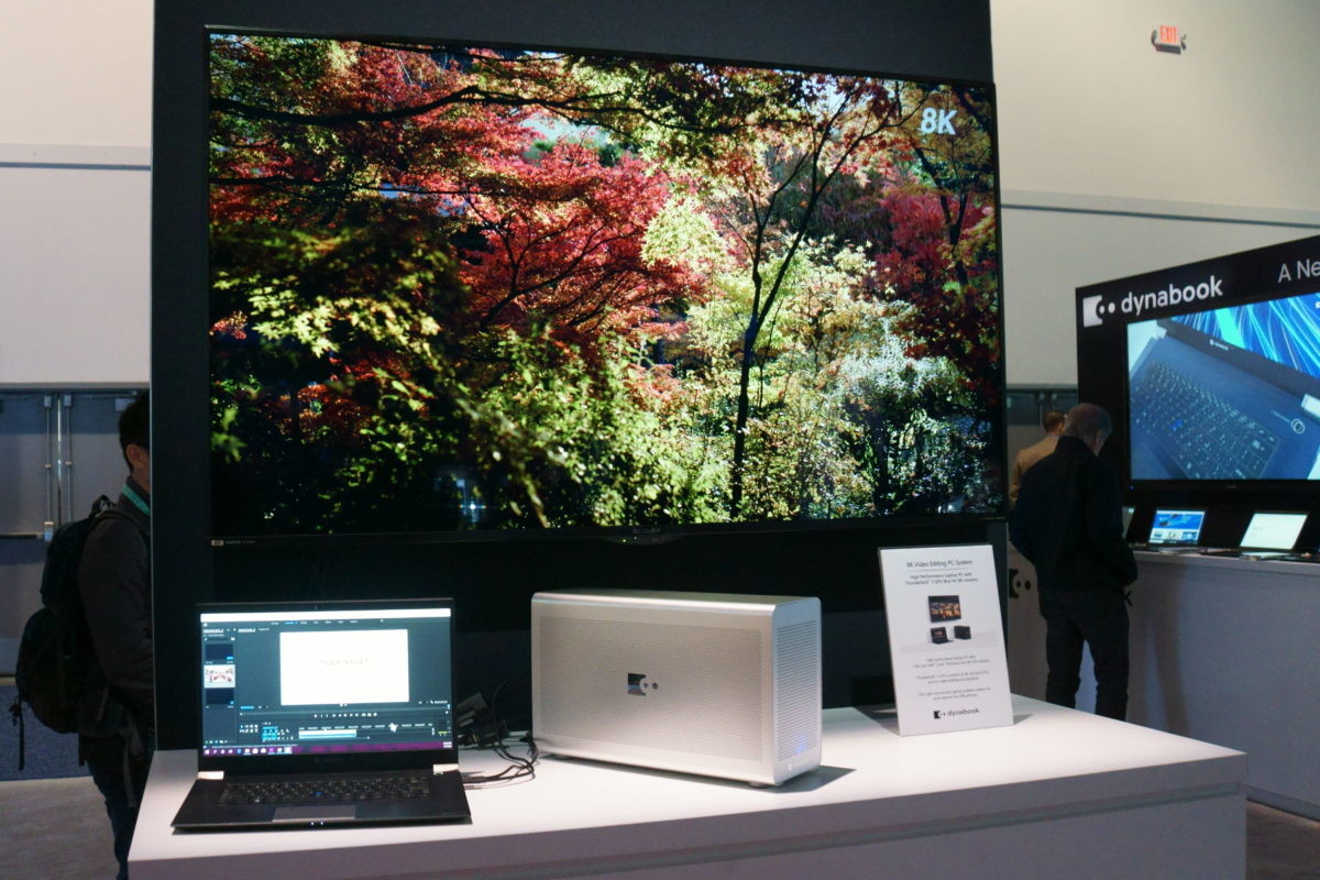 120型8K液晶ディスプレイを展示していたシャープは、ノートPC「Dynabook」で8K映像を編集できる「8K Video Editing PC System」を発表しました。第10世代のインテルCoreプロセッサを搭載した15.6型4KディスプレイのノートPC、Thunderbolt 3接続のNVIDIA Gfx、そして8Kモニター、Adobe Premiere Proで構成されます。現在開発中とのことですが、ノートPCで8K映像が編集できる時代が到来しそうです。シャープはCESで5Gスマホの開発を進めていることも明らかにしました。未来に果敢に攻めていく姿勢、今後が楽しみですね。