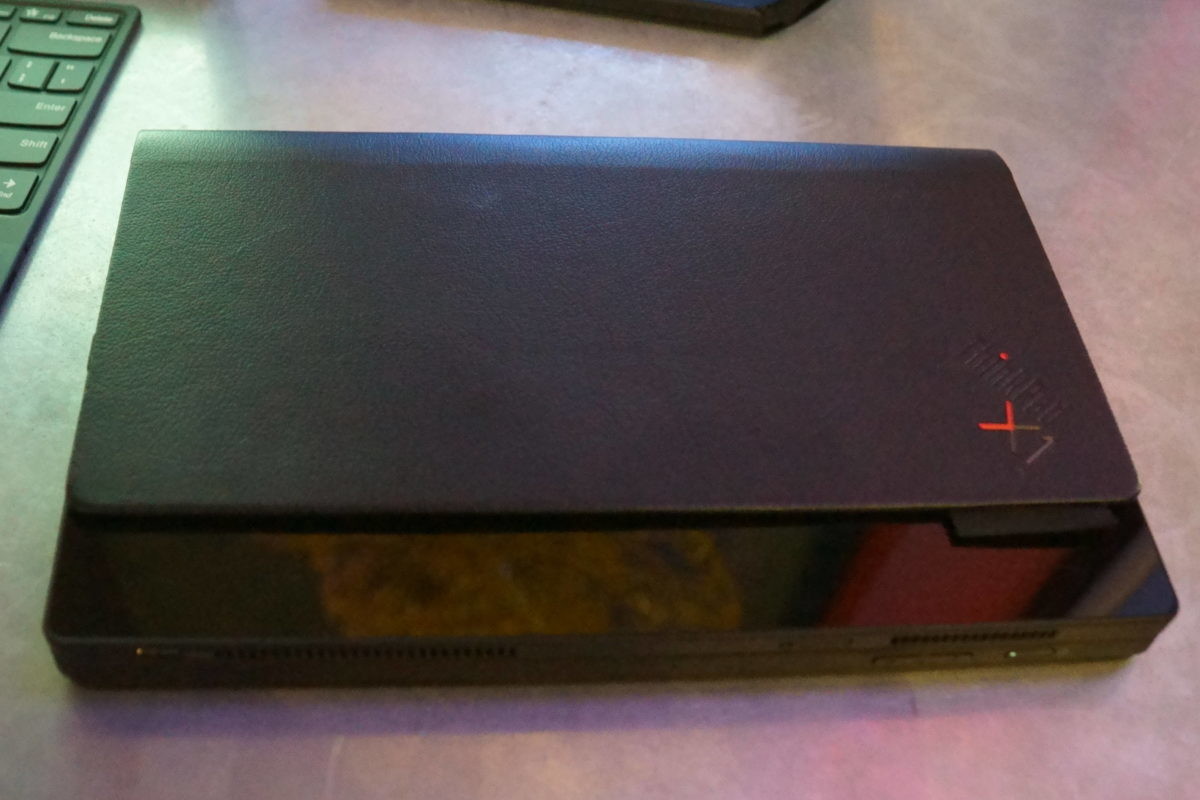 LenovoはフォルダブルPC「ThinkPad X1 Fold」を発表しました。13.3型有機ELディスプレイを半分に折り曲げることができるPCです。折り曲げた際のすき間には、専用のBluetoothキーボードがぴったりと収まります。外面は革製のカバーが付いており、まるでシステム手帳を抱えるような感覚でノートPCを持ち歩くことができます。