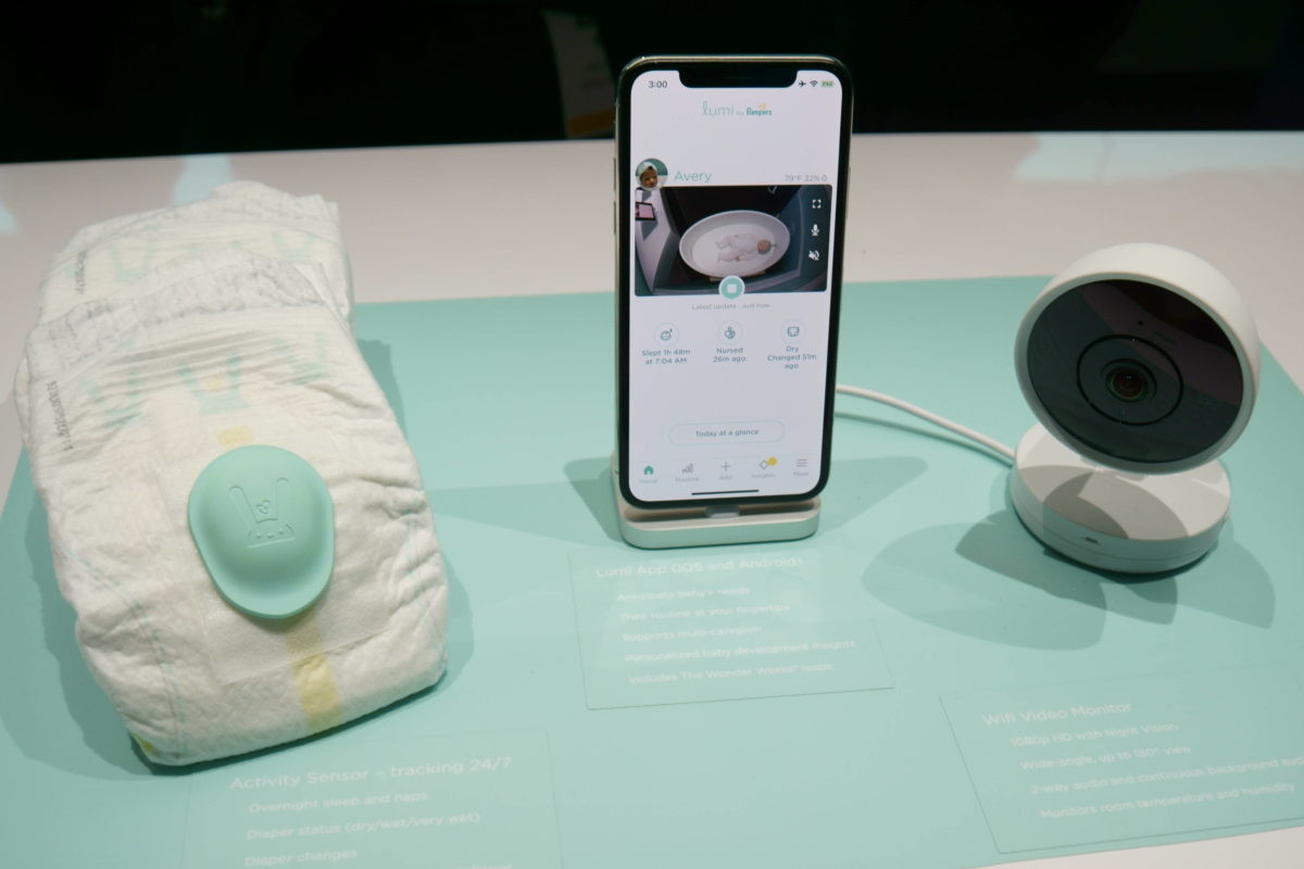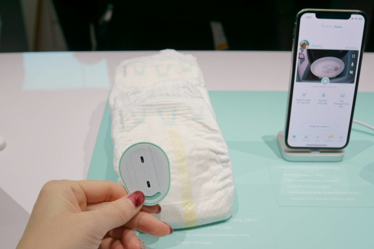 まずは、今回のCESで話題をさらった「スマート紙おむつ」とも言うべき、「Lumi by Pampers」(P&G)からご紹介しましょう。Lumi by Pampersは、赤ちゃんの排泄とお部屋の温度管理、そしてスケジュール管理をセンサーとアプリを連携させて行うシステムです。